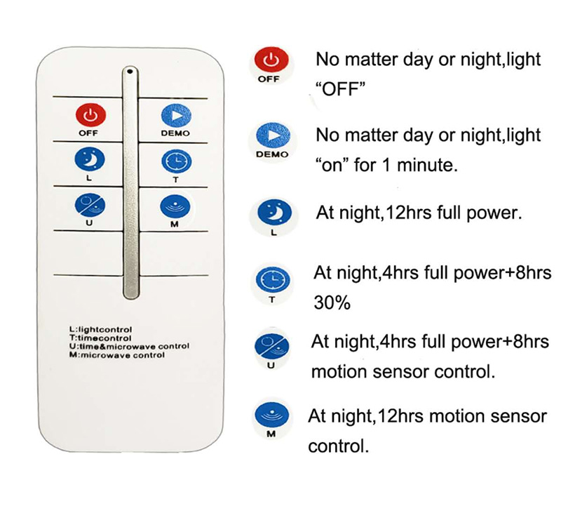 - Cảm biến ban đêm + Cảm biến chuyển động vi sóng + Điều khiển từ xa